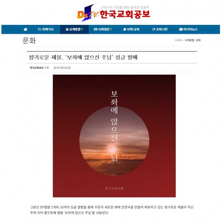 [기사] 향기로운 제물, ‘보좌에 앉으신 주님’ 싱글 발매(한국교회공보)