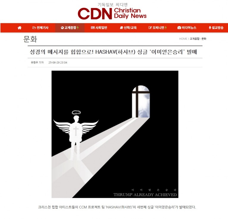 [기사] 성경의 메시지를 힙합으로! HASHAV(하샤브) 싱글 ‘이미얻은승리’ 발매(기독일보 씨디엔)