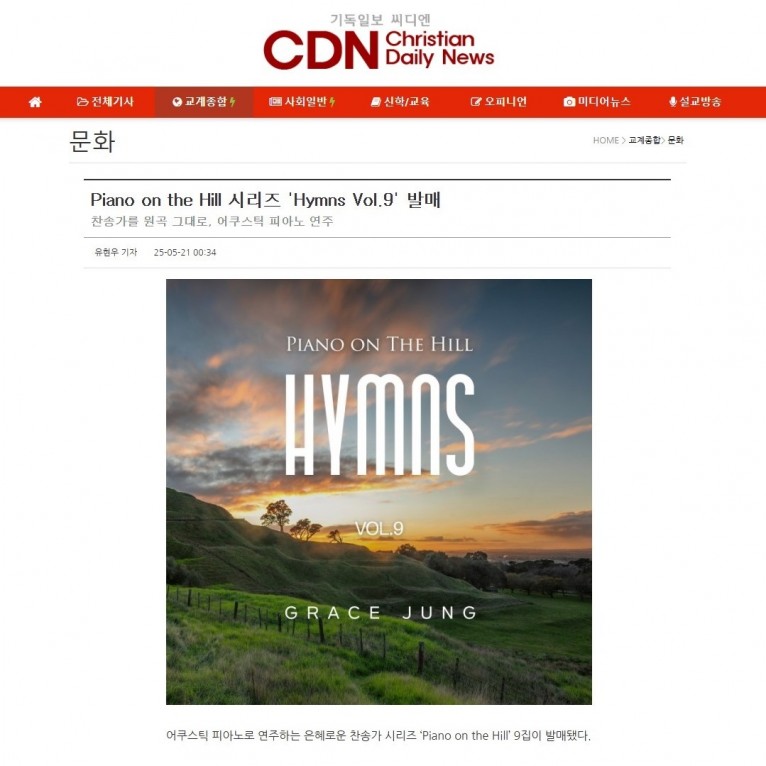 뮤직타임 [기사] Piano on the Hill 시리즈 'Hymns Vol.9' 발매(기독일보 씨디엔)