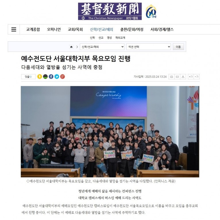 뮤직타임 [기사] 예수전도단 서울대학지부 목요모임 진행(기독교신문)