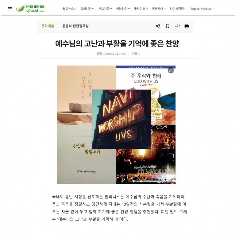 [기획기사] 예수님의 고난과 부활을 기억에 좋은 찬양(라이프굿타임즈)