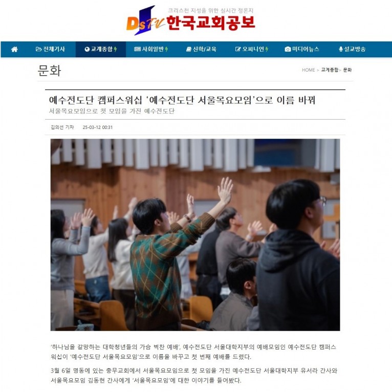 [기사] 예수전도단 캠퍼스워십 ‘예수전도단 서울목요모임’으로 이름 바꿔(한국교회공보)