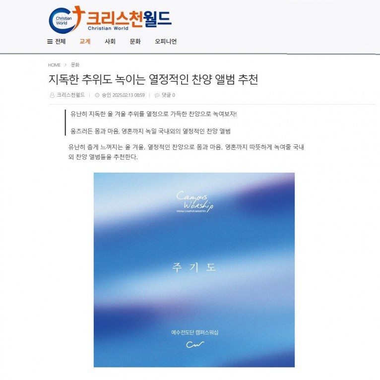 뮤직타임 [기획기사] 지독한 추위도 녹이는 열정적인 찬양 앨범 추천(크리스천월드)