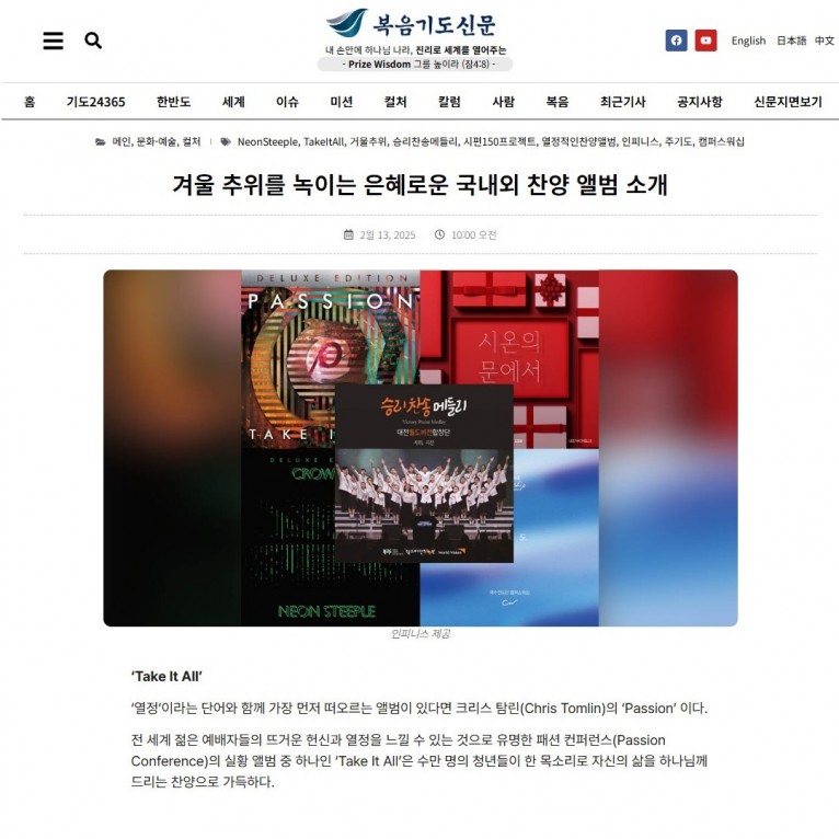 뮤직타임 [기획기사] 겨울 추위를 녹이는 은혜로운 국내외 찬양 앨범 소개(복음기도신문)