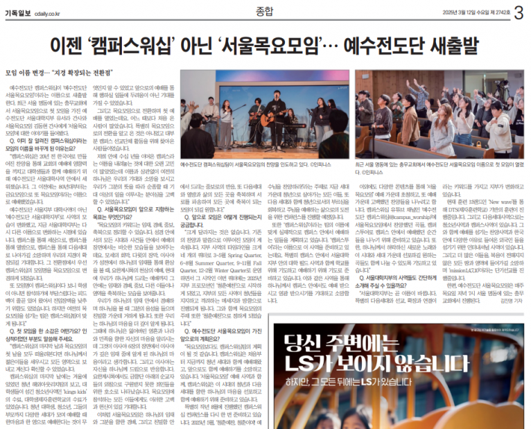 뮤직타임 [기사] ‘이젠 캠퍼스워십 아닌 서울목요모임’ 예수전도단 새출발(기독일보)