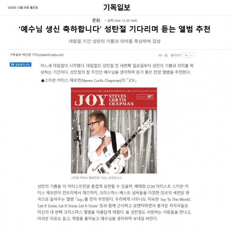 뮤직타임 [기획기사] ‘예수님 생신 축하합니다’ 성탄절 기다리며 듣는 앨범 추천(기독일보)