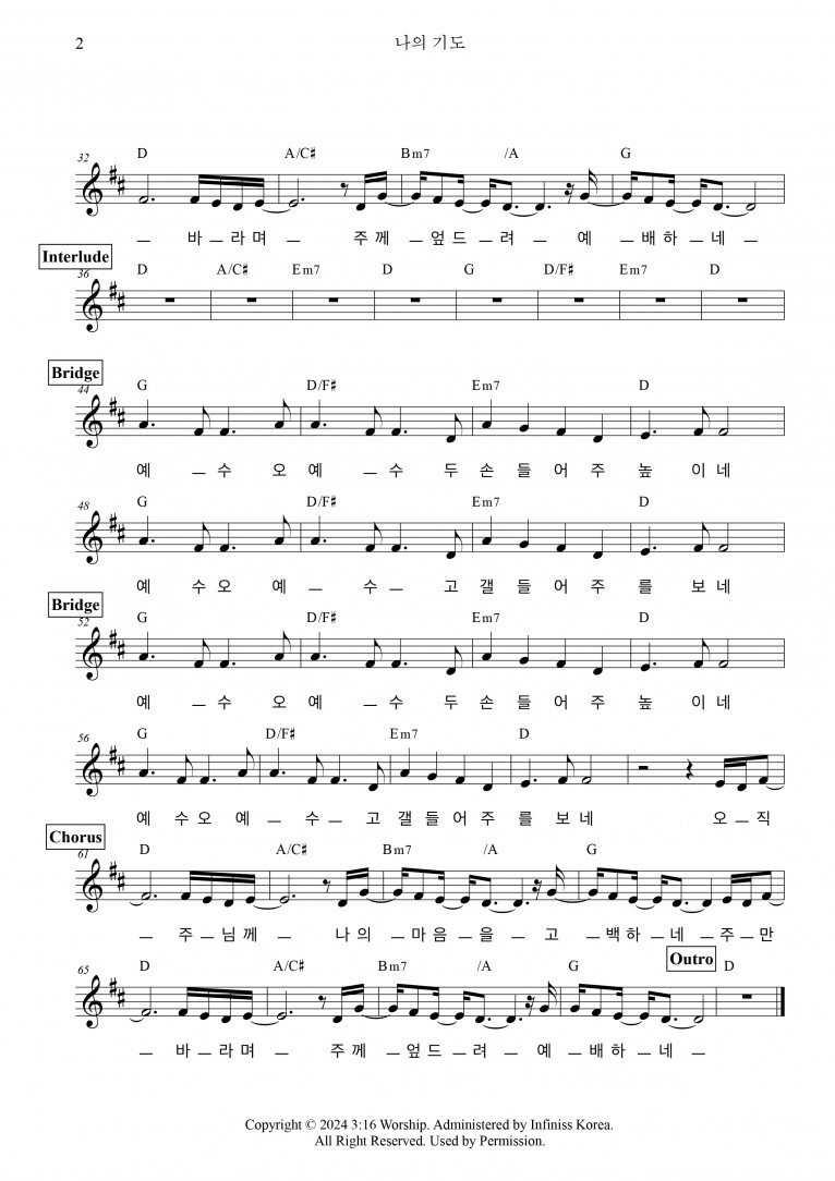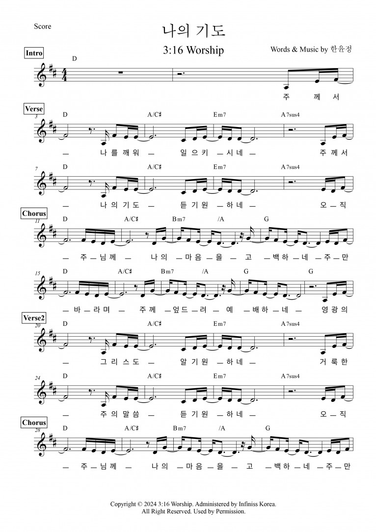 뮤직타임 [악보][MV] 나의 기도 - 3:16 Worship