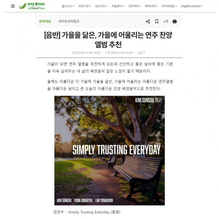 뮤직타임 [기획기사] 가을을 닮은, 가을에 어울리는 연주 찬양 앨범 추천(라이프굿타임즈)