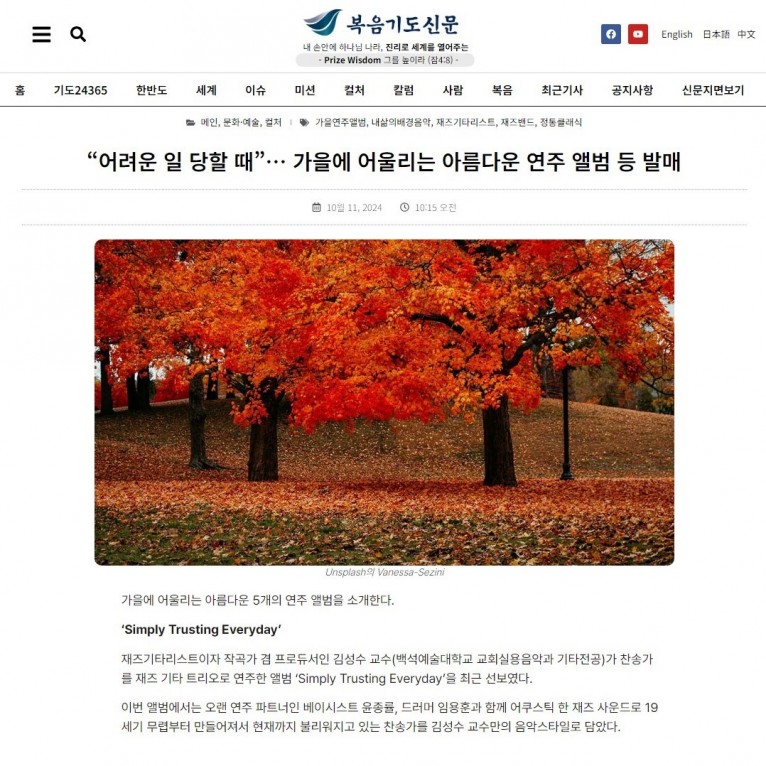 뮤직타임 [기획기사] “어려운 일 당할 때”… 가을에 어울리는 아름다운 연주 앨범 등 발매(복음기도신문)