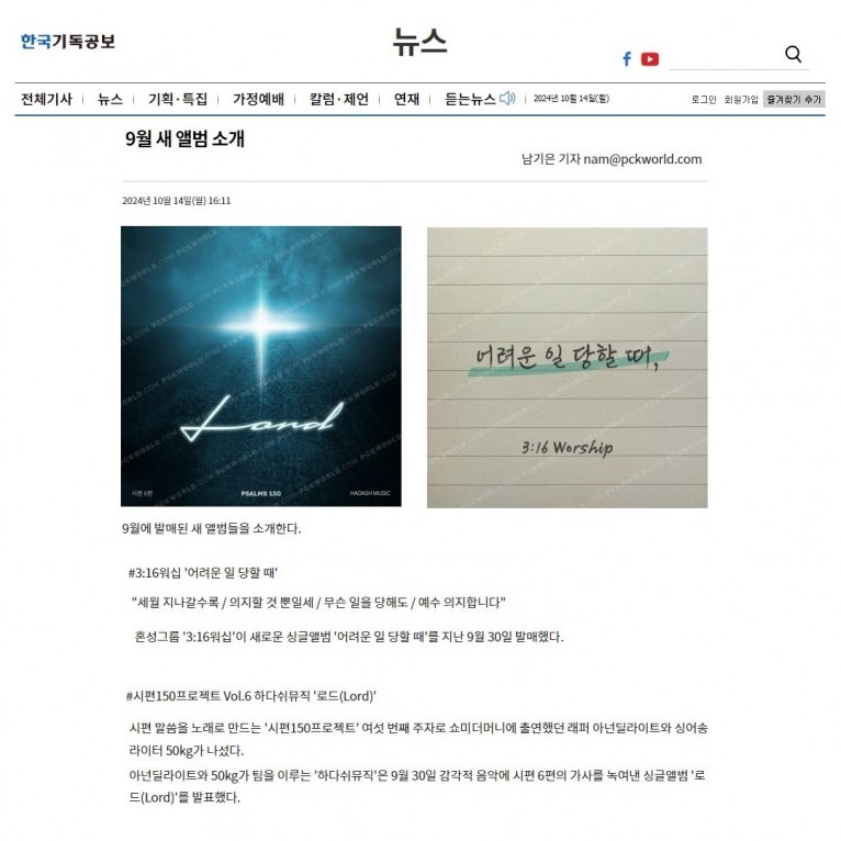 뮤직타임 [기사] 새 앨범 소개(한국기독공보)