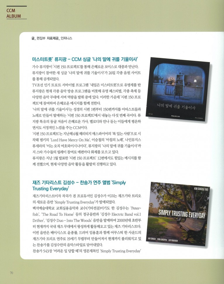 뮤직타임 [잡지] New Album_ 시편 150 프로젝트 Vol. 5 - 류지광 (싱글) 등 3편(월간 Church Media 202…