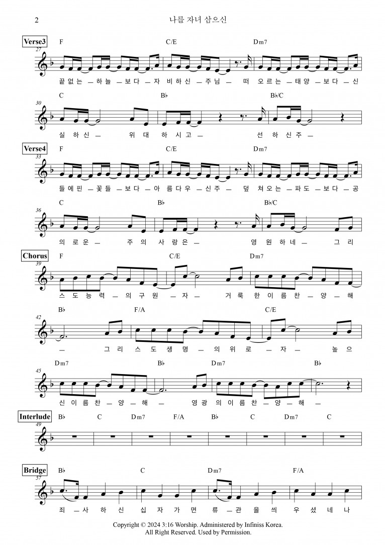 악보출처 https://shorter.me/5wRsm (3:16 Worship 구글 드라이브)