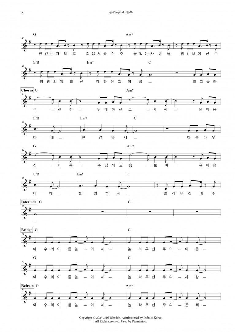 [악보 & MV] 놀라우신 예수 - 3:16 Worship