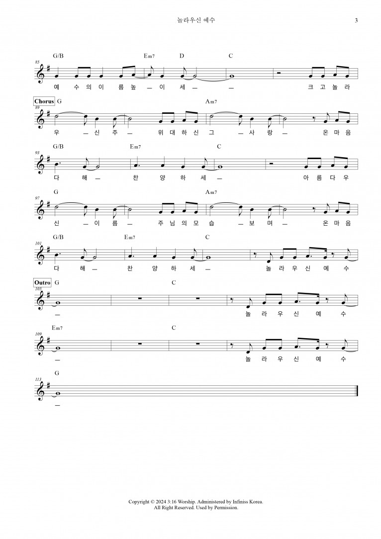 뮤직타임 [악보 & MV] 놀라우신 예수 - 3:16 Worship