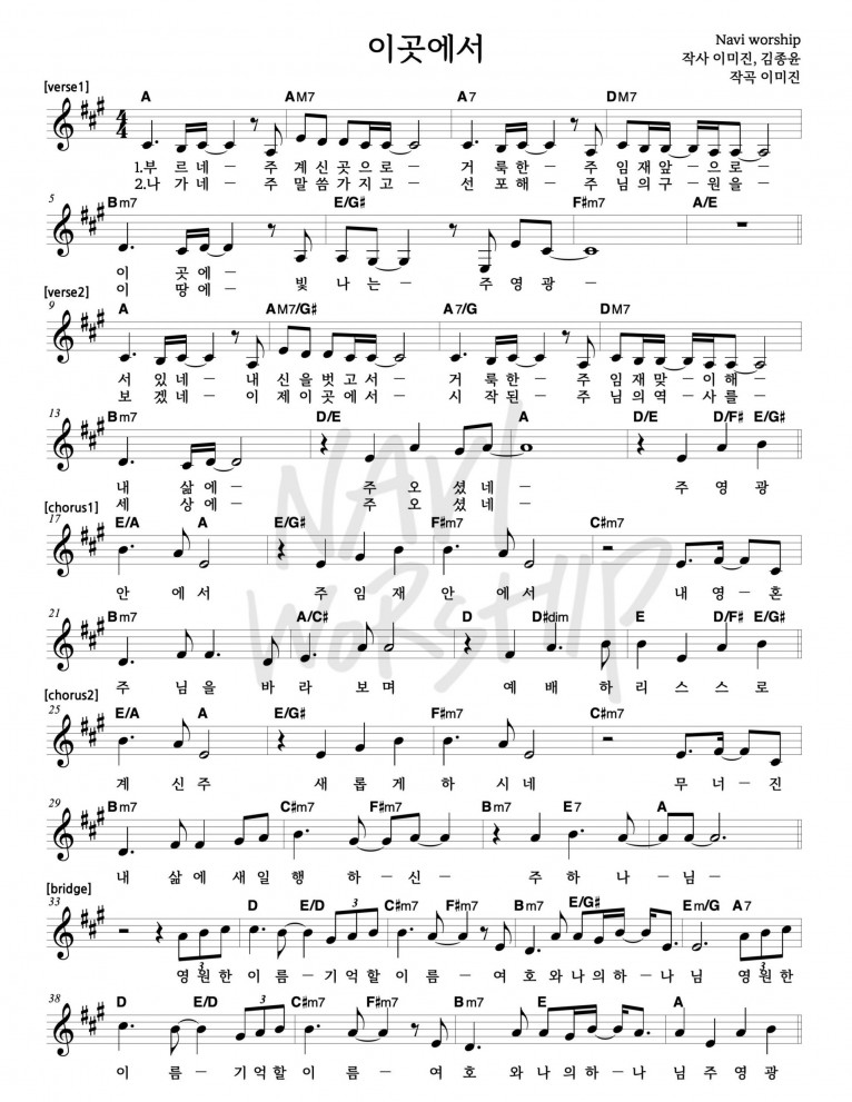 뮤직타임 [악보] 이 곳에서 - 나비워십