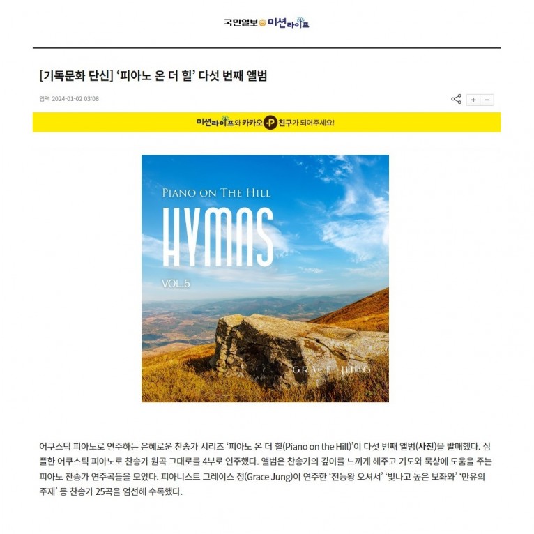 [기사] ‘피아노 온 더 힐’ 다섯 번째 앨범(국민일보)