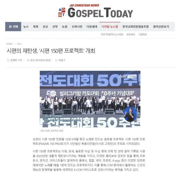 [기사] 시편의 재탄생, ‘시편 150편 프로젝트’ 개최(가스펠투데이)