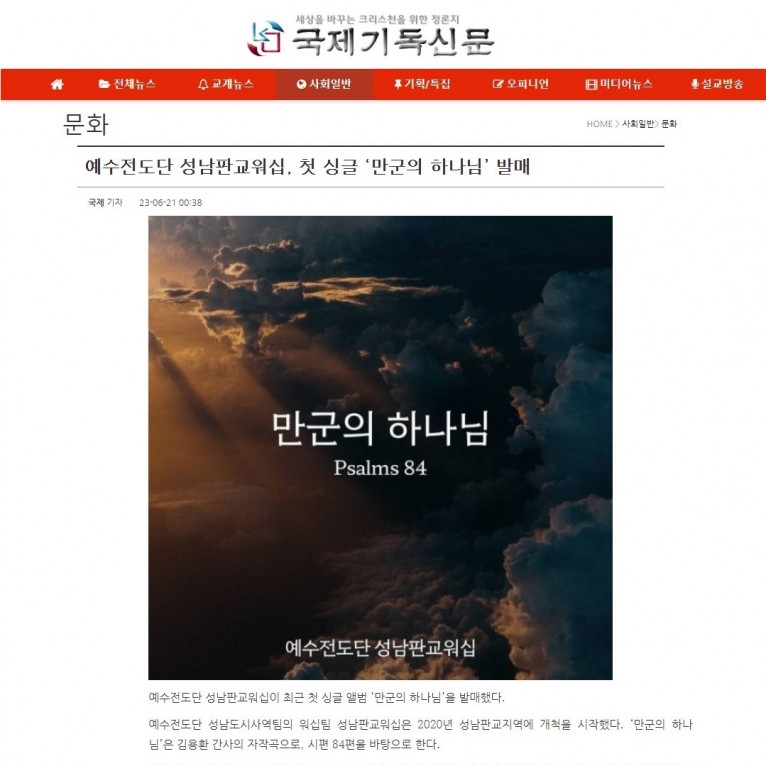 [기사] 예수전도단 성남판교워십, 첫 싱글 ‘만군의 하나님’ 발매(국제기독신문)
