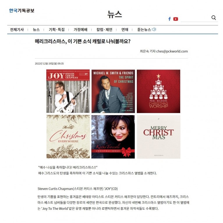 [기사] 메리크리스마스, 이 기쁜 소식 캐럴로 나눠볼까요?