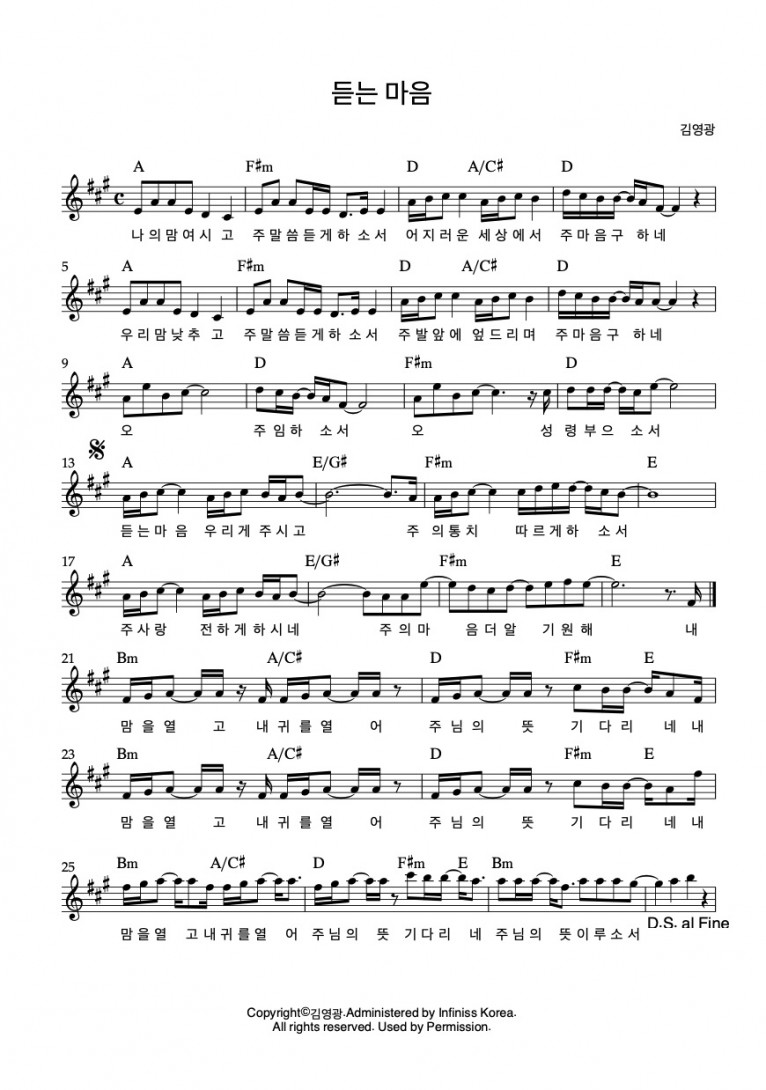 [악보] 듣는 마음 - 김영광 (예수의 사랑이) (EP)(음원)