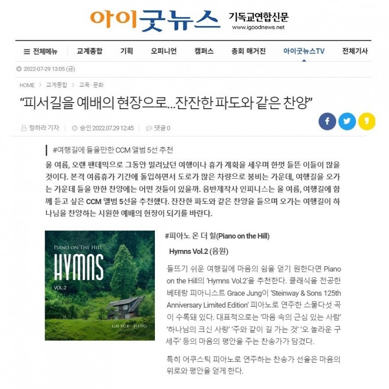 뮤직타임 [기사] “피서길을 예배의 현장으로…잔잔한 파도와 같은 찬양”