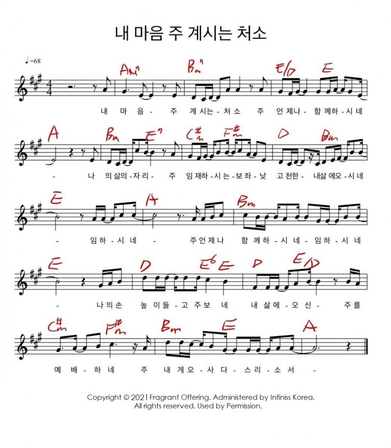 뮤직타임 [악보] 내 마음 주 계시는 처소 - 향기로운 제물