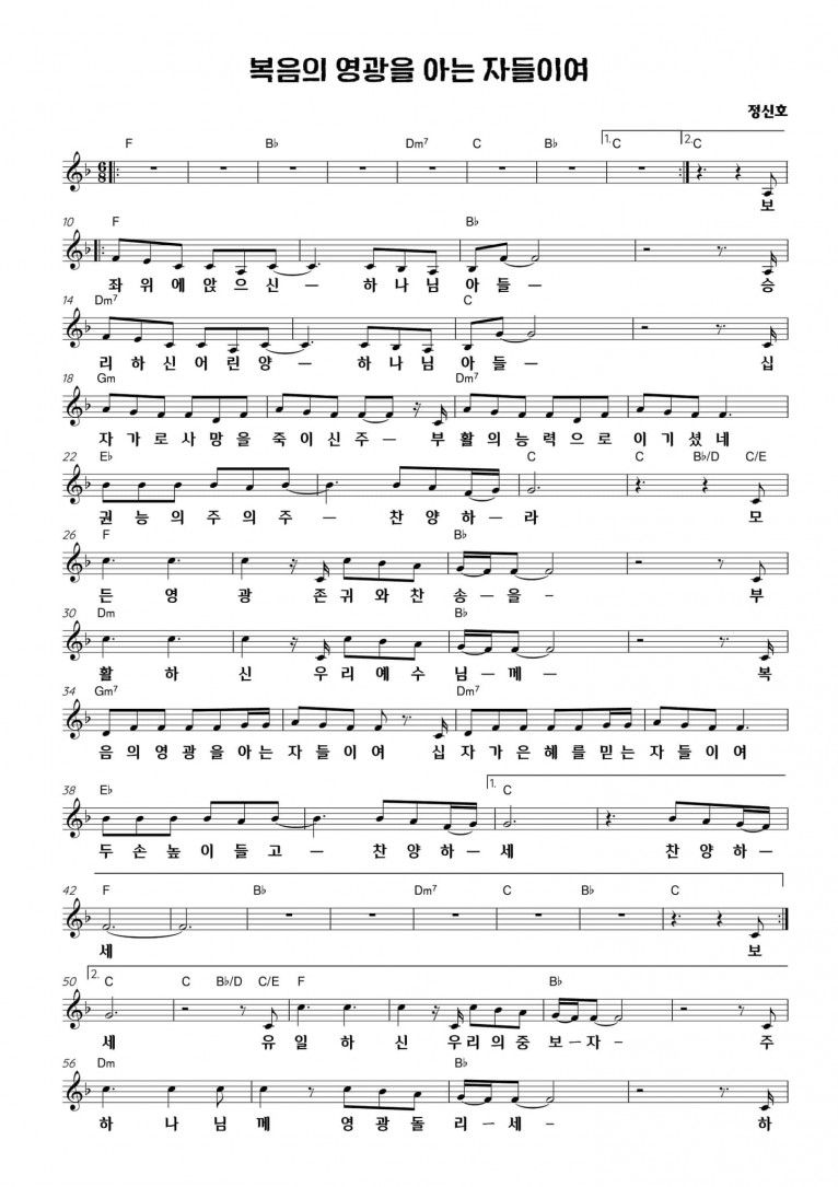 복음의 영광을 아는 자들이여 십자가 은혜를 믿는 자들이여