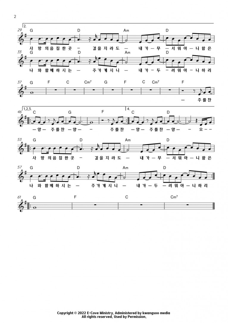 오~ 사망의 음침한 곳 걸을지라도
