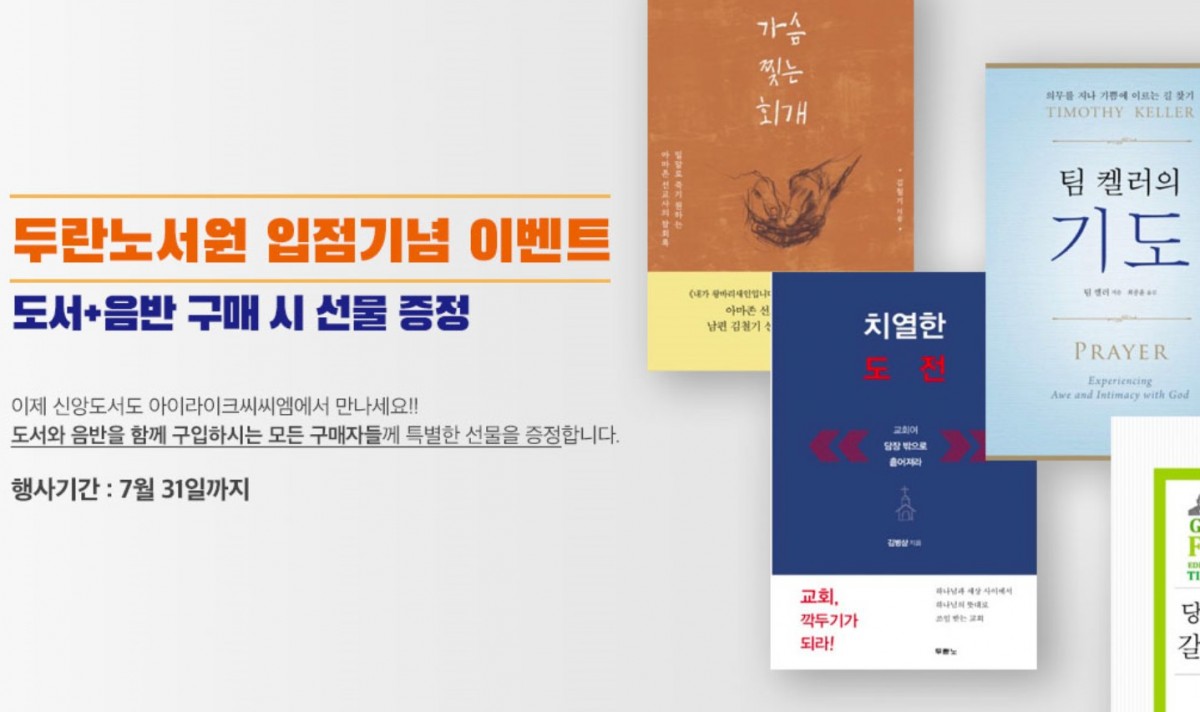 두란노서원의 보석같은 도서들을 이제 아이라이크씨씨엠에서도 만나 보실 수 있습니다!