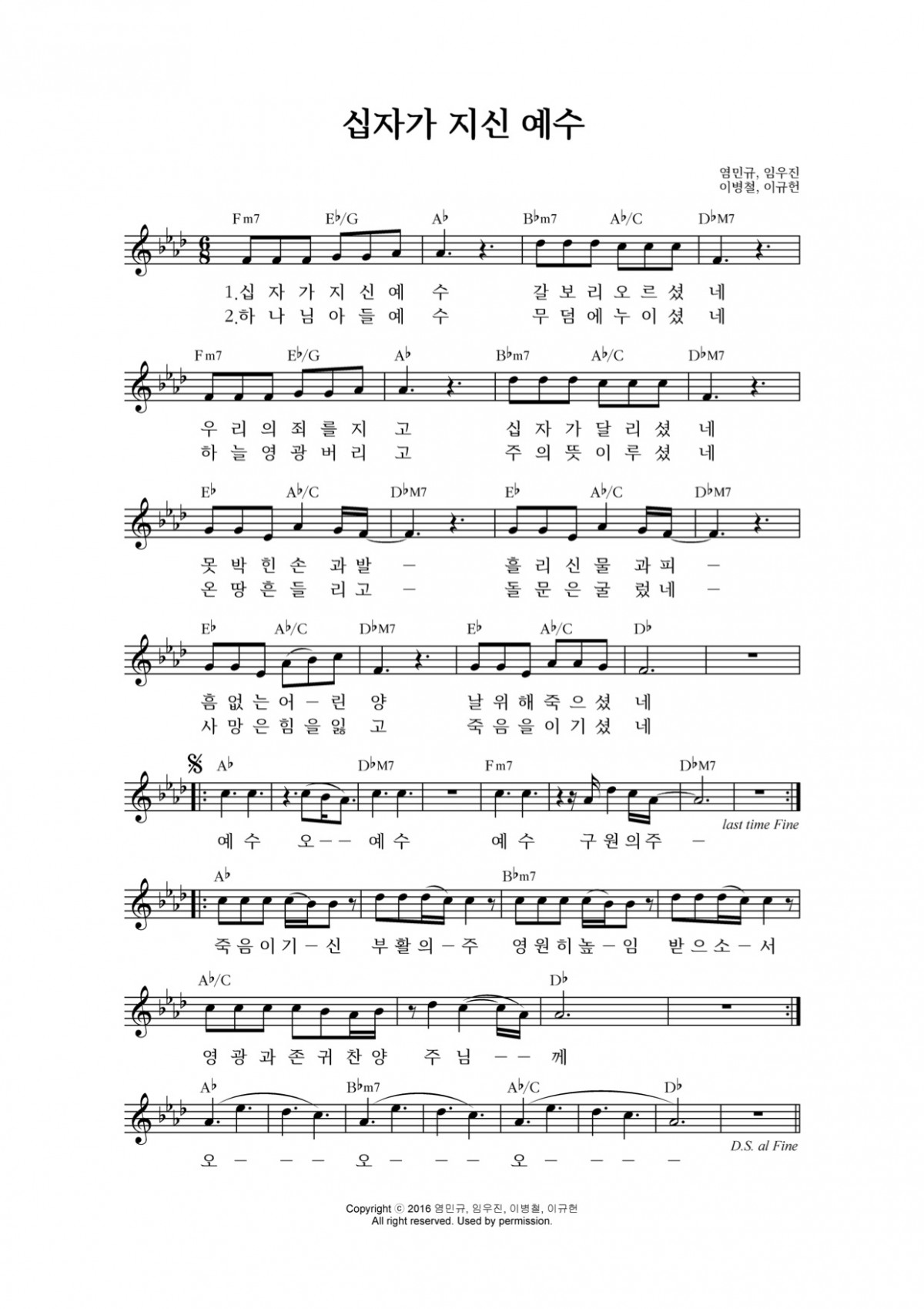 예수전도단 서울화요모임 부활절 싱글 [십자가, 예수]의 수록 곡 중 '십자가 지신 예수'의 악보 무료 배포