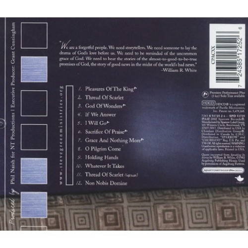 1.Pleasures of the King 2. Thread of Scarlet 3.God of Wonders 4. If We Answer 5. I Will Go 6.Sacrifice of Praise 7. Grace And Nothing More 8. O Pilgrim Come 9. Holding Hands 10. Whatever It Takes 11. Thread of Scarlet (reprise) 12. Non Nobis Domine