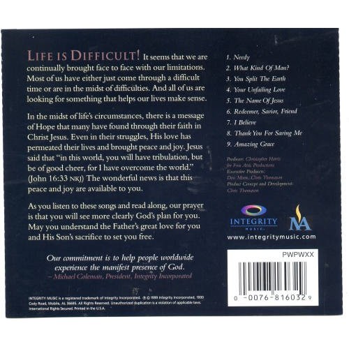 1. Needy 2. What Kind Of Man? 3. You Split The Earth 4. Your Unfailing Love 5. The Name Of Jesus 6. Redeemer- Savior- Friend 7. I Believe Various 8. Thank You For Saving Me 9. Amazing Grace
